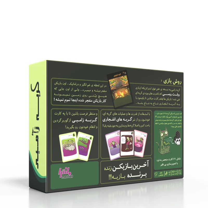 بازی فکری گربه زامبی برند مانترا، با ژانر استراتژی، مناسب برای 2 تا 5 نفر، ویژه گروه سنی بزرگسال، کودک و نوجوان